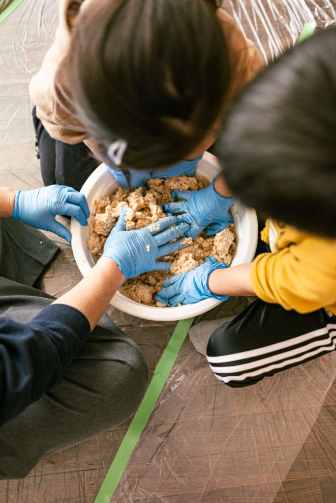 大豆と麹と塩を混ぜて、親子で手を動かすひととき。