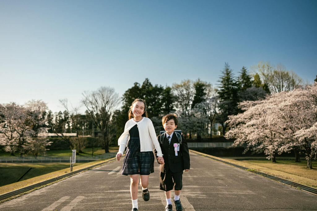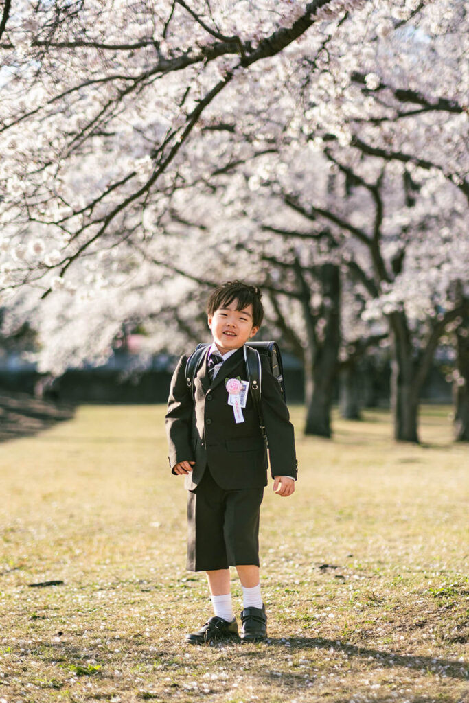 春の七五三撮影なら、入学記念のランドセル姿と一緒に残すことも可能です。